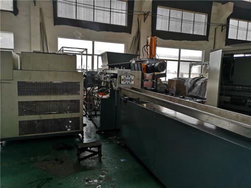 體硬度:HRC60-64;螺桿元件通過加工中心制作,由曲面成型磨加工;5、料筒1)材質(zhì):45#鋼為基體,∞內(nèi)孔采用優(yōu)質(zhì)雙合金襯套;共十二節(jié),L=290mm/節(jié),第一節(jié)筒體為進(jìn)料筒體,第六節(jié)筒體為自然排氣;第十節(jié)筒體為抽真空;其余筒體為閉口筒體;筒體采用軟水冷卻;2)加熱區(qū)段:進(jìn)料區(qū)不加熱,采用優(yōu)質(zhì)鑄鋁加熱器。6、水冷卻系統(tǒng)1)水泵泵電機(jī)功率:0.55kw;自動控水電磁閥;手動閥用銅閘閥控制;加大水流量,2)采用環(huán)保風(fēng)冷卻系統(tǒng)(環(huán)保型:發(fā)明專利號:CN201911312134.6)不需要接外循環(huán)水冷卻,不用徘外水;采用閉環(huán)循環(huán)系統(tǒng) 7、抽真空系統(tǒng):1)真空泵功率:3kw;抽真空水箱為不銹鋼材質(zhì);2)采用環(huán)保風(fēng)冷卻系統(tǒng)(環(huán)保型:發(fā)明專利號:CN201911312115.3)不需要接外循環(huán)水冷卻,采用閉環(huán)循環(huán)系統(tǒng)8、液壓板式換網(wǎng):1)換網(wǎng)器,板式過濾自動換網(wǎng)器,流量截面為圓形;2)液壓缸、液壓站等一套,采用YA-N46抗磨46#液壓油;(油品需客戶自行采購)9、水環(huán)機(jī)頭裝置:1) 熱電偶與壓力傳感器分開安裝,分別用于檢測溫度和壓力(三)水下切粒雙螺桿造粒機(jī)_雙螺桿塑料造粒機(jī)_輔機(jī)配置(公司專利產(chǎn)品)1)水槽:一臺,L=6米,加寬加深,槽體為不銹鋼材質(zhì),上面加導(dǎo)流棍,高壓水泵一套;3KW2)水下切粒系統(tǒng)一套(公司專利)功率11kw,變頻調(diào)速;切粒動刀刀口采用鎢鋼材質(zhì)3)離心脫水機(jī):一臺,電機(jī)功率11kw,加大型水箱為優(yōu)質(zhì)不銹鋼材質(zhì);4)離心脫水機(jī)冷卻系統(tǒng):水泵泵電機(jī)功率:3kw;2臺,采用環(huán)保風(fēng)冷卻系統(tǒng)(環(huán)保型: 發(fā)明專利號:CN201911312134.6)不需要接外循環(huán)水冷卻,不用徘外水;采用閉環(huán)循環(huán)系統(tǒng)5)加長振動篩:一臺,L=2.5m,電機(jī)采用:震動專用電機(jī);震動量可以調(diào)節(jié)大小:電機(jī)功率率:0.55KW兩臺;振動篩篩網(wǎng)采用三層分離物料;大孔直徑φ12mm,小孔直徑φ2.5mm,不銹鋼材質(zhì),6)風(fēng)吹料倉:一套,1m料倉一件,不銹鋼材質(zhì);采用φ130mmPVC軟管管聯(lián)接;4kw物料輸送風(fēng)機(jī)。下面放噸袋雙螺桿塑料片材生產(chǎn)線 http://m.weijiyi.cc/contents/112/44.html